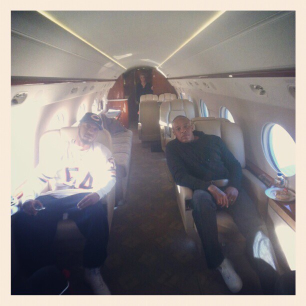 We reported that the new drink would launch early this year and this week it appears the official launch took place at the Bellagio and guess who Xzibit captured via Instagram together on a private jet heading to the event? That’s right none other than 2001 architects Dr. Dre & Mel-Man, reunited at last – a one off or a possible sign that Dre is warming to finish “Detox” – you decide and check the pictures below that also feature Snoop Dogg, King Tee, FuzzyFanTab and others!