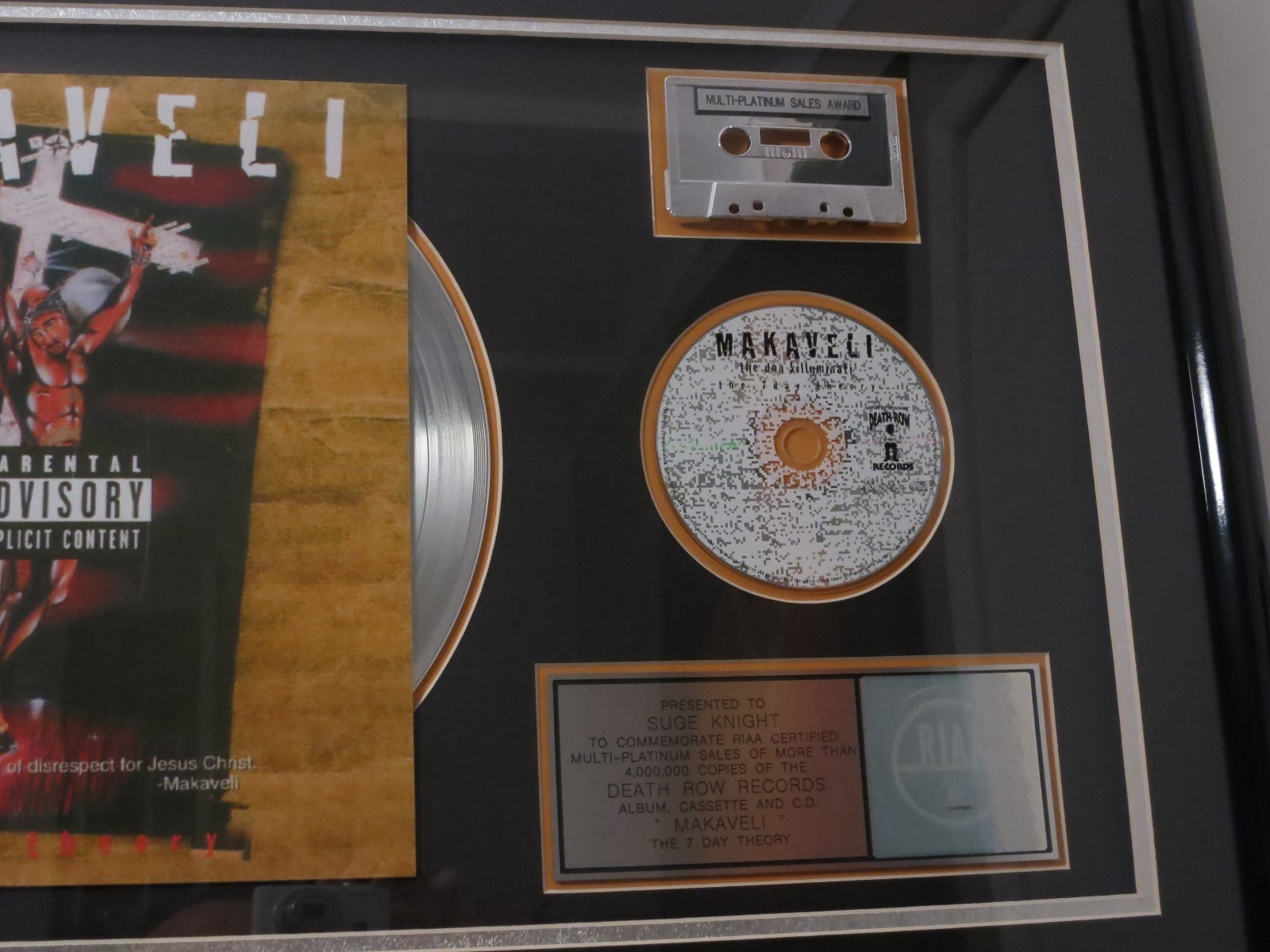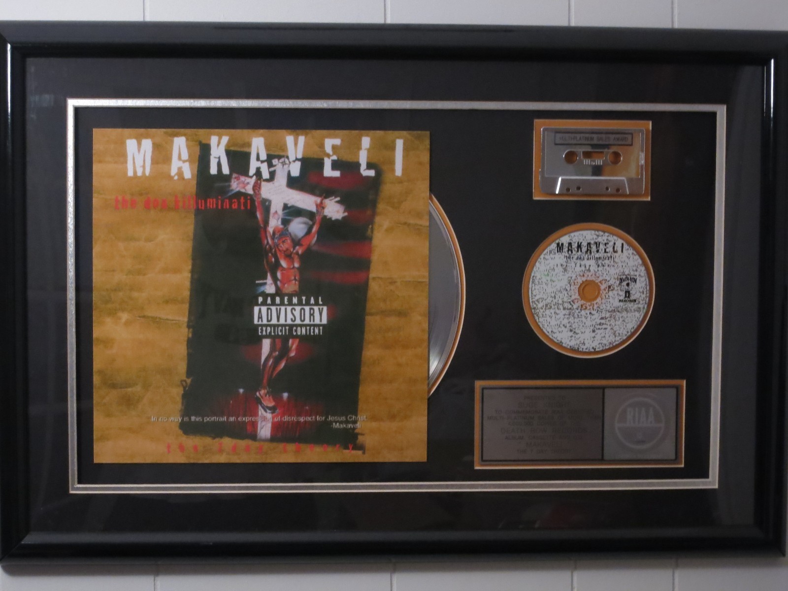 I wonder what the "original receipt" was for... definitely wasn't $40,000.You could probably just order one directly from the RIAA and get your own name on it for way less, and likely get the album finally certified 5X Platinum in the process.