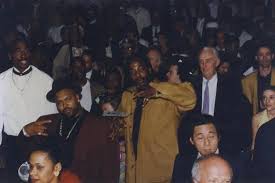 Suge's MOB Poochie is squatting in the front with the classes on. He is the one who shot Biggie