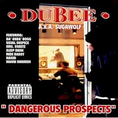 Dubee's Discography.Never checked out his stuff until this challenge so big ups to Chad and adding a new and challenging twist to reviewing albums.Here it goes:1. I'm Ah Hog 2. The Word 3. Y.B.B. Bomb 4. Game U Feenin 4 5. Mackin Is My Duty 6. Mac Dre (Game I'm Spittin) 7. That's What We Do 8. My Thang 9. Unda Da Trees 10. Off A Da Heezy 11. Reek Daddy 12. Pit Bull VIcious 13. Dubee, Mall & Sleep 14. Hair Shop Hoes Dubee AKA Sugwolf:This is a hell of a debut album.This album is so under rated.I'm A Hog, YBB Bomb, Pit Bull Vicious.It is one of those debut albums where the rapper and the producer are in perfect sync.He was kicking some fierce pimp rhymes on this one.